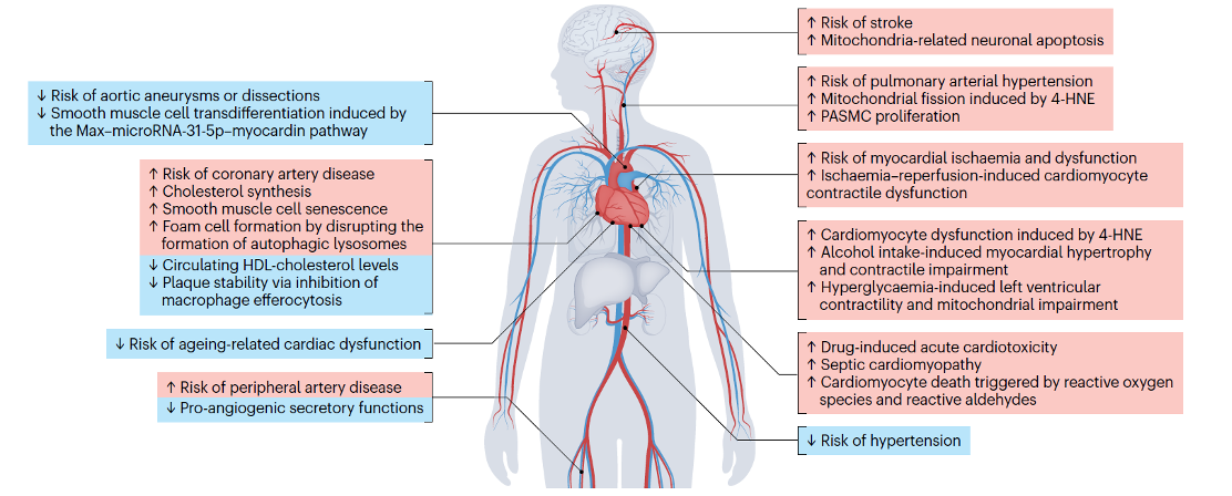 在该综述中,作者结合自身开展的一系列创新性研究的成果以及经验,系统梳理了从1949年至今的ALDH2相关研究历史线,重点描绘了ALDH2在各类CVD中的作用图谱,并对ALDH2的生物学结构基础—ALDH2酶、非酶等多种功能在疾病中扮演多重角色的机制—基于ALDH2为靶点的新型调节剂研究及未来科研方向进行了全面总结和展望,创新性地提出了ALDH2在疾病中的“双刃剑作用”特征以及针对性的未来防治策略,以进一步促进该类疾病的精准防治。