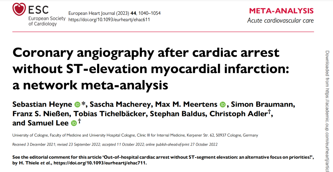 NSTE-OHCA早期行CAG的风险获益以及指南推荐European Heart Journal (2023) 44, 1055–1057